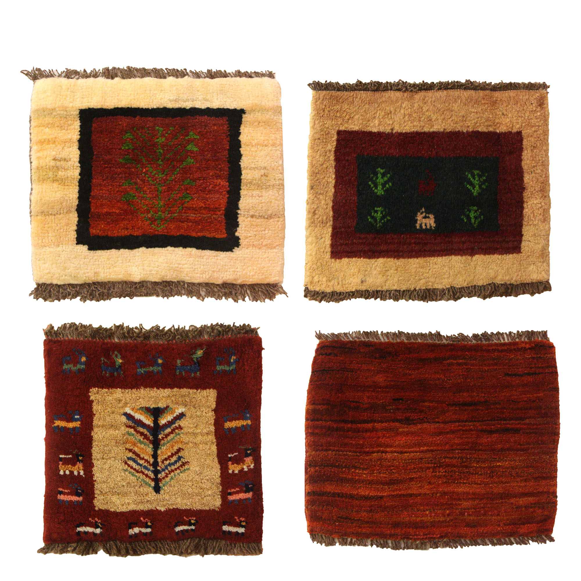 Gabbehs are made of natural, handspun wool yarn and all the colors are created with natural plant dye. Due to its relative ease of production (less precise pattern, small number of knots per square centimeter, etc.) a gabbeh is one of the less expensive varieties of Persian carpet.